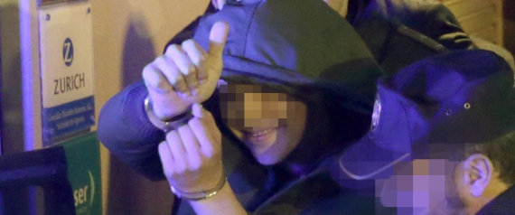 Foto pixelada del agresor por tratarse de un menor, celebrando su estúpida actitud.